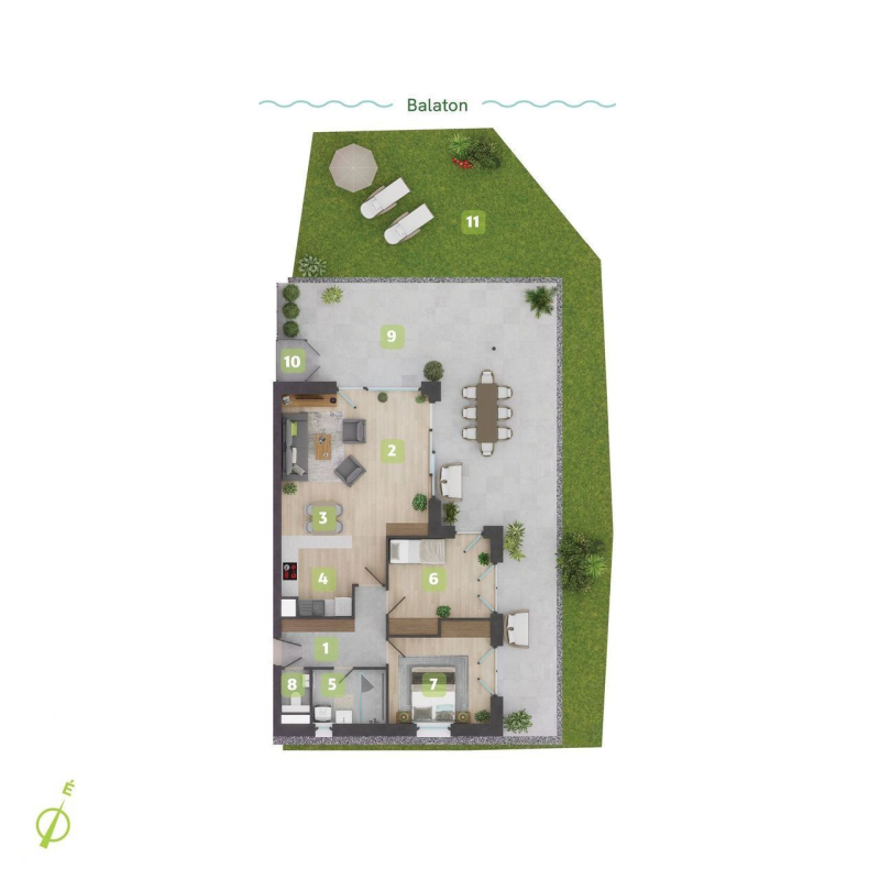 A Vadvirág Residence a Balaton partján egy olyan zöld lakóparkot valósít meg, amely összhangban van a természetes környezettel, miközben modern kényelmet kínál a lakók számára. A terület a gazdag növényállományával, különböző facsoportokkal, örökzöldekkel, platán fákkal és nyárfákkal rendelkezik, melyek évtizedek során alakultak ki, és a projekt központi elemét képezik.