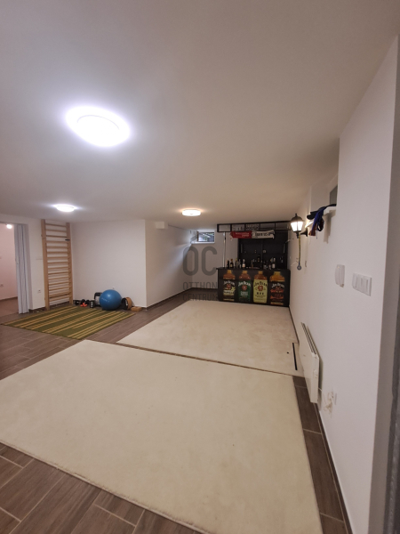 wellness részleg a pinceszinten:egy gerenátorral működtetett sóbefúvókkal felszerelt sóbarlang, egy 12 személyes újszerű állapotú finn szauna, két zuhanyzó, öltözők és két vendégwc, fűtött tepidárium ( kőpad) és pihenőrészleg.