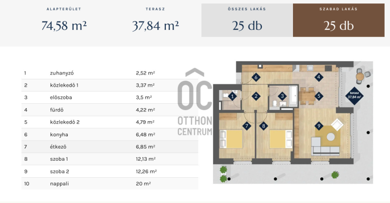 20 db 75 m2 lakás 38 m2 terasszal 1.750.000 FT bevezető áron
