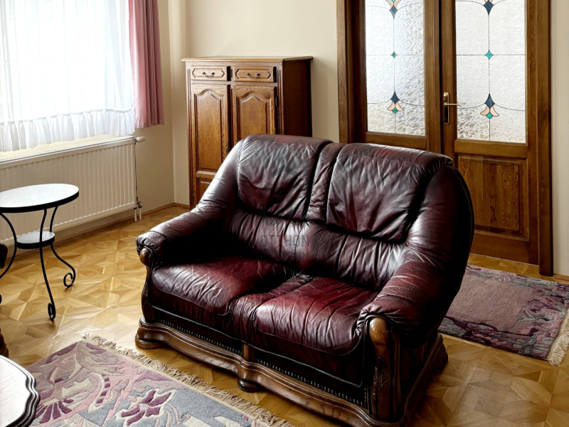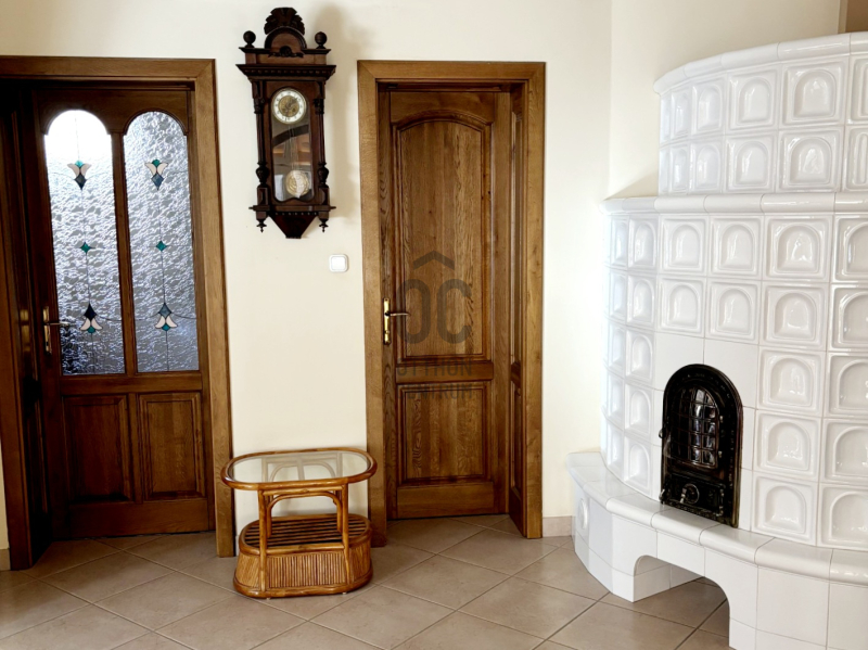 három külön nyíló hálószoba, intarziás parkettával burkolt nappali, étkező, teraszkapcsolatos konyha, bútorozott kamra, mosókonyha kényelmes padlásfeljáróval, valamint egy tágas fürdőszoba (zuhanyzóval, masszázsfunkciós sarokkáddal, WC-vel és bidével), továbbá egy külön WC–kézmosó kapott helyet.